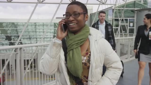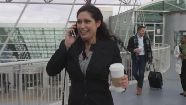 > Group of business people meeting and talking at airport