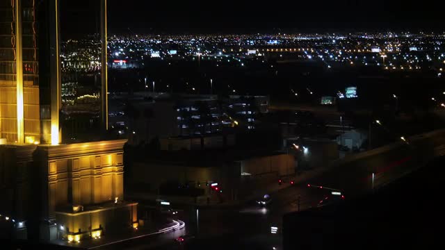 > Las Vegas, Nevada circa-2017, Aerial view of Las Vegas Strip at night. Shot with Cineflex and RED E