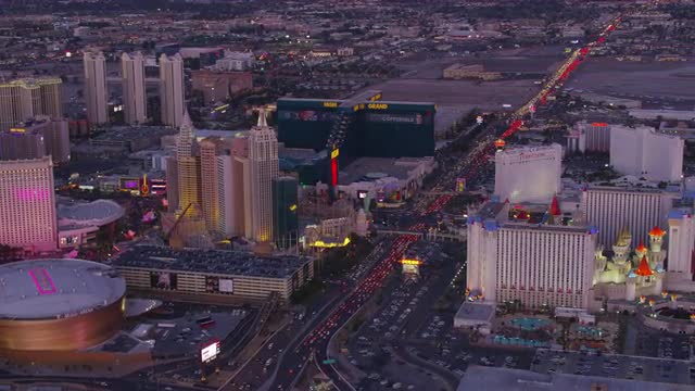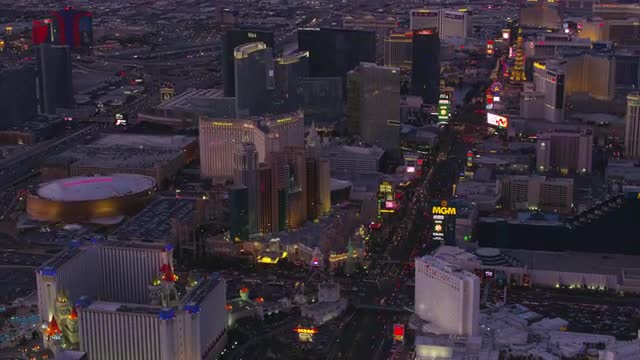 > Las Vegas, Nevada circa-2017, Aerial view of Casinos on the Las Vegas Strip. Shot with Cineflex and