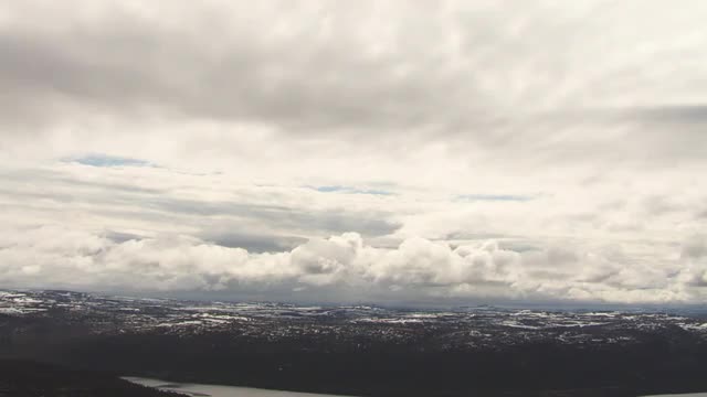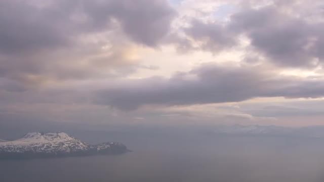 New York City circa-2017, High angle aerial view of lower Manhattan with low clouds. Shot with Cineflex and RED Epic-W Helium.
