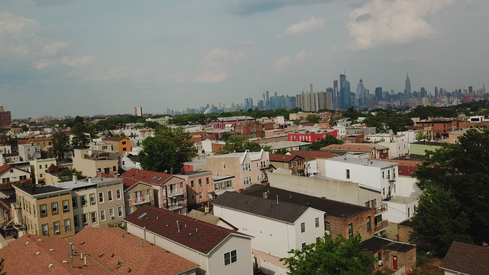 New Jersey circa-2017, Aerial view of neighborhood near Elizabeth New Jersey. Shot with Cineflex and RED Epic-W Helium.