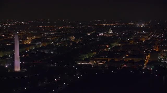 Washington, D.C. circa-2017, Aerial view of the Capitol Mall area at night. Shot with Cineflex and RED Epic-W Helium.