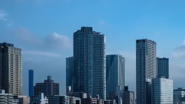 > Timelapse view of clouds moving over Tokyo cityscape, Tokyo, Japan