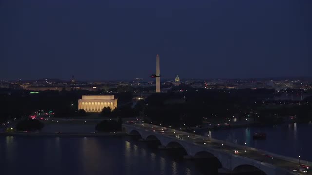 Washington, D.C. circa-2017, Aerial view of the Lincoln Memorial, Washington Monument and Capitol Building. Shot with Cineflex and RED Epic-W Helium.