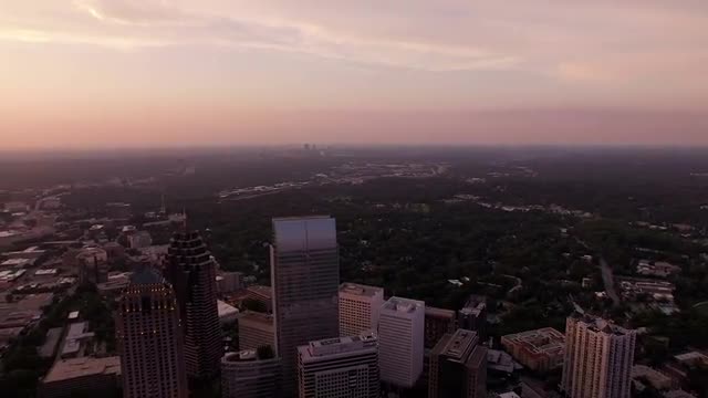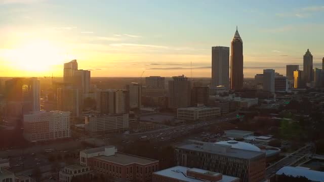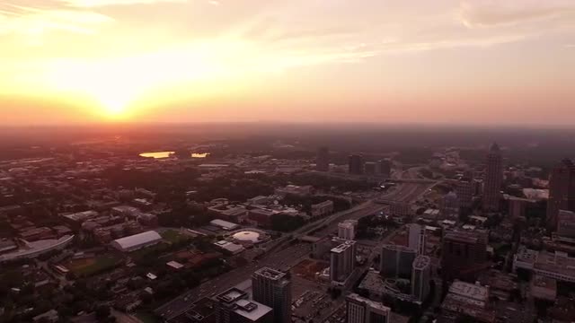 Washington, D.C. circa-2017, Aerial approach to Georgetown University at sunset. Shot with Cineflex and RED Epic-W Helium.
