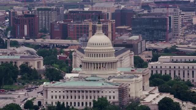 Washington, D.C. circa-2017, Aerial view of the Capitol and Rayburn House Office Building. Shot with Cineflex and RED Epic-W Helium.