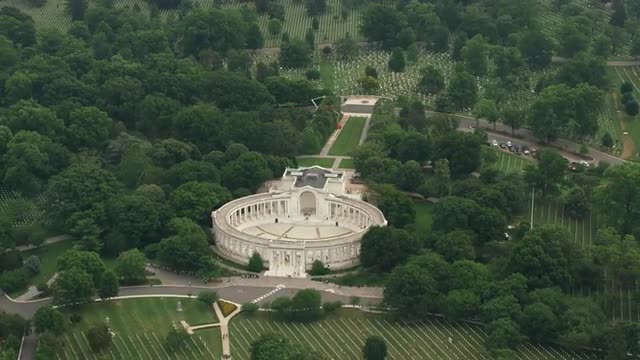 Washington, D.C. circa-2017, Aerial view of Arlington National Cemetery. Shot with Cineflex and RED Epic-W Helium.