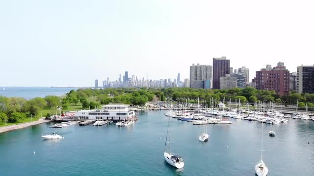> Chicago, Illinois circa-2017, Daytime aerial shot of downtown Chicago. Shot with Cineflex and RED E