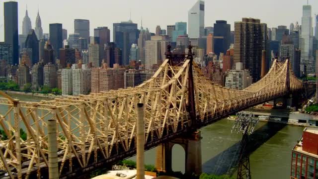 New York City, New York circa-2017, Flying over Roosevelt Island and Queensboro Bridge. Shot with Cineflex and RED Epic-W Helium.