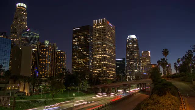Atlanta, Georgia circa-2017, Aerial shot of downtown Atlanta freeway intersection at dusk. Shot with Cineflex and RED Epic-W Helium.
