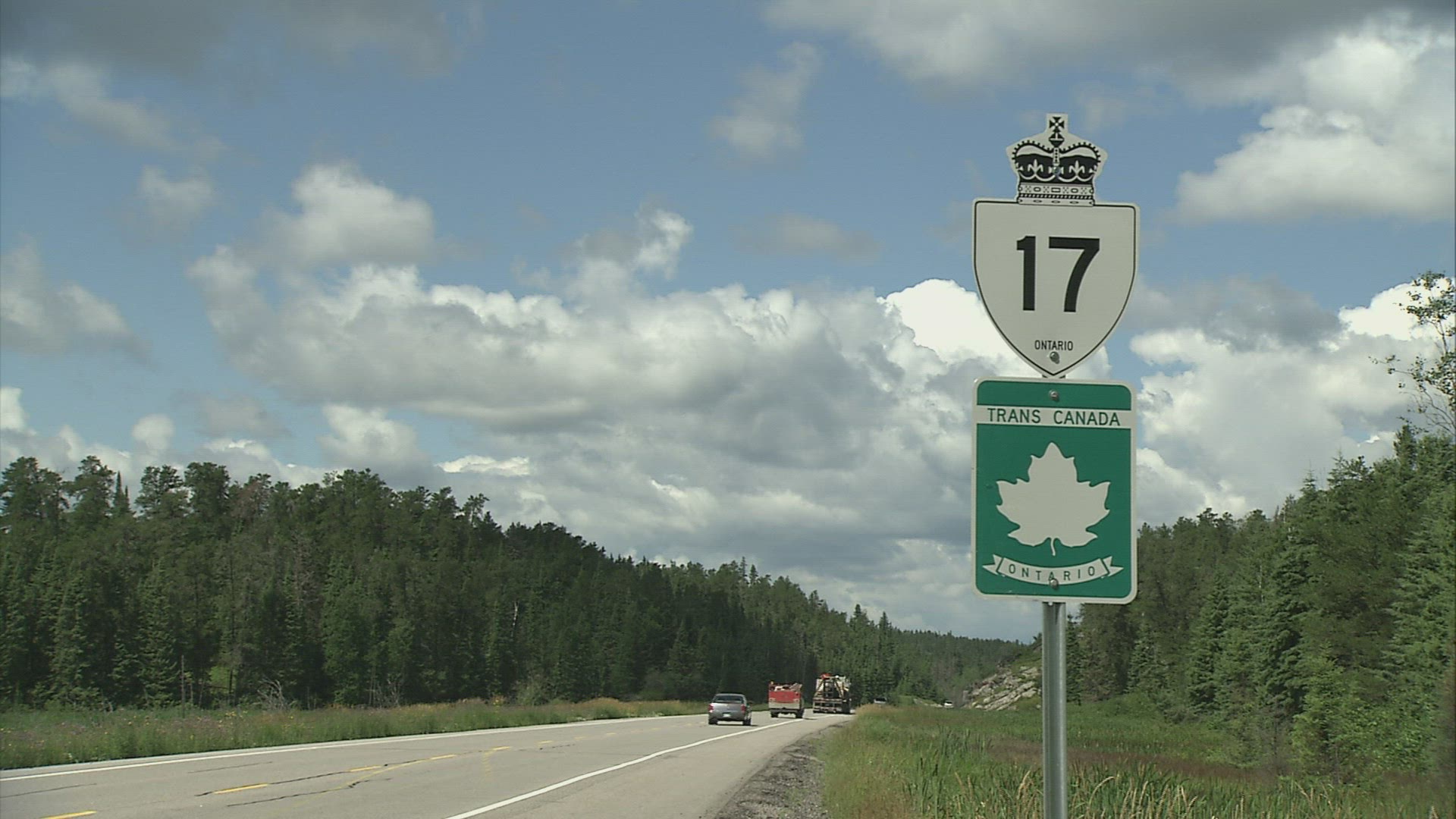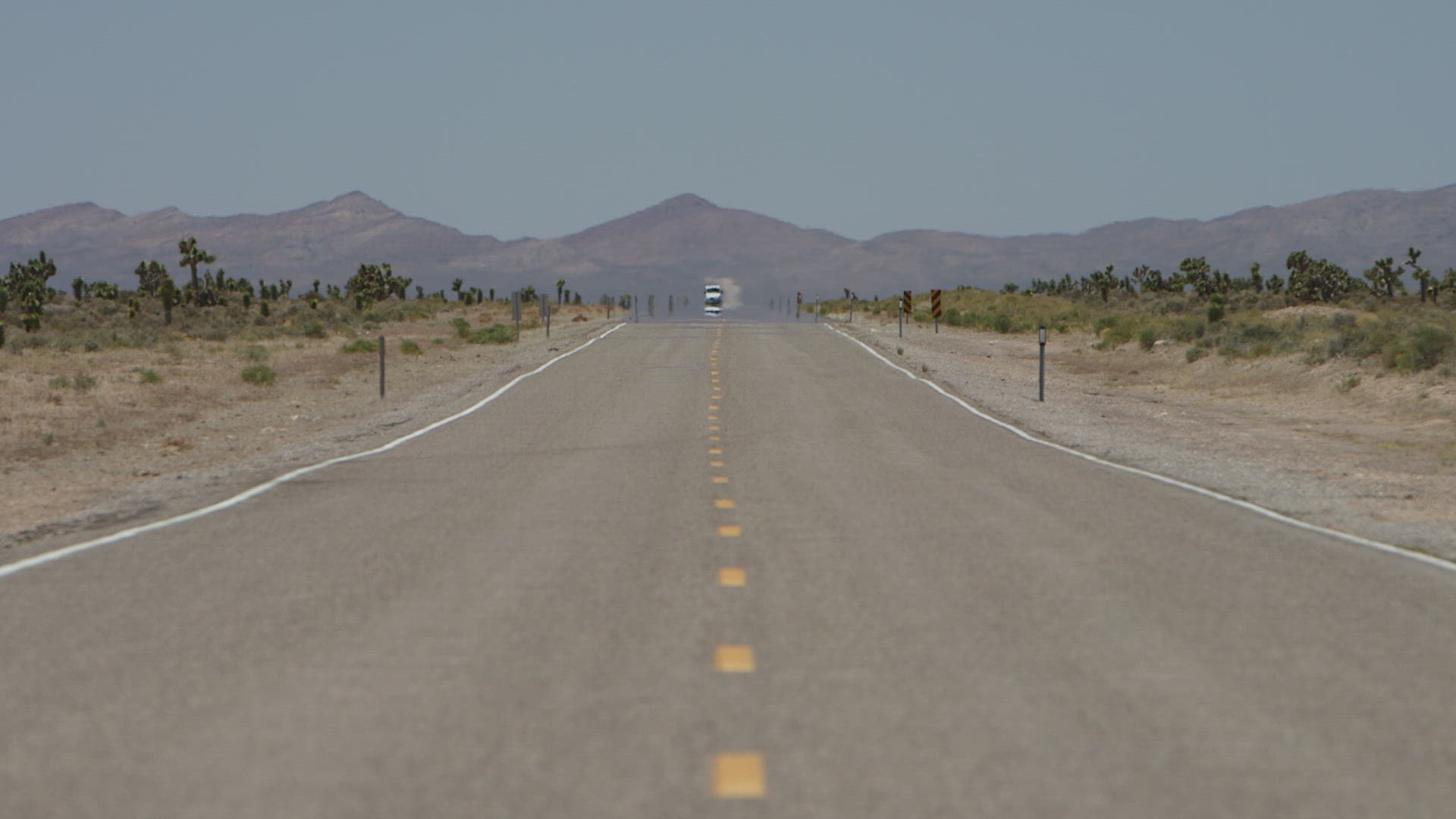 > Oregon circa-2107, Logging truck driving on highway in Oregon forest.