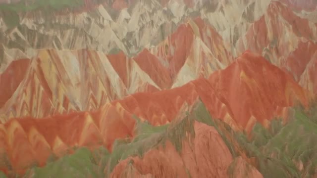 POV WS Aerial view of beautiful rainbow mountains in Zhangye Danxia Landform, China