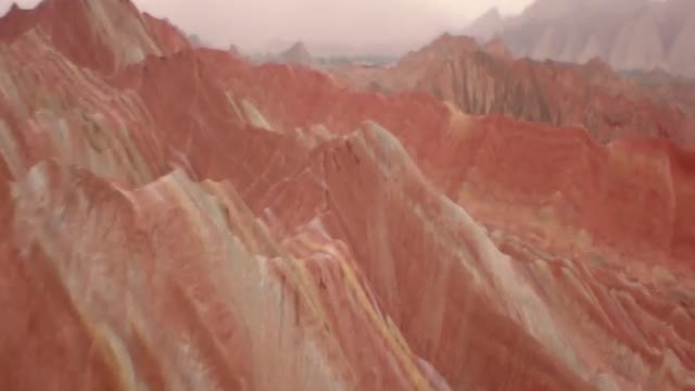 POV WS Aerial view of beautiful rainbow mountains in Zhangye Danxia Landform, China