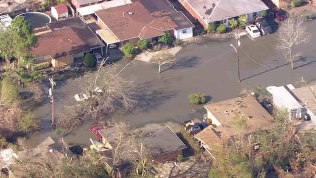 Aerial footage of hurricane katrina, category 5 hurricane in New Orleans