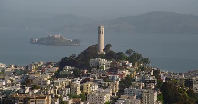 998702 - San Francisco, California circa-2017, Aerial view of city and Coit Tower